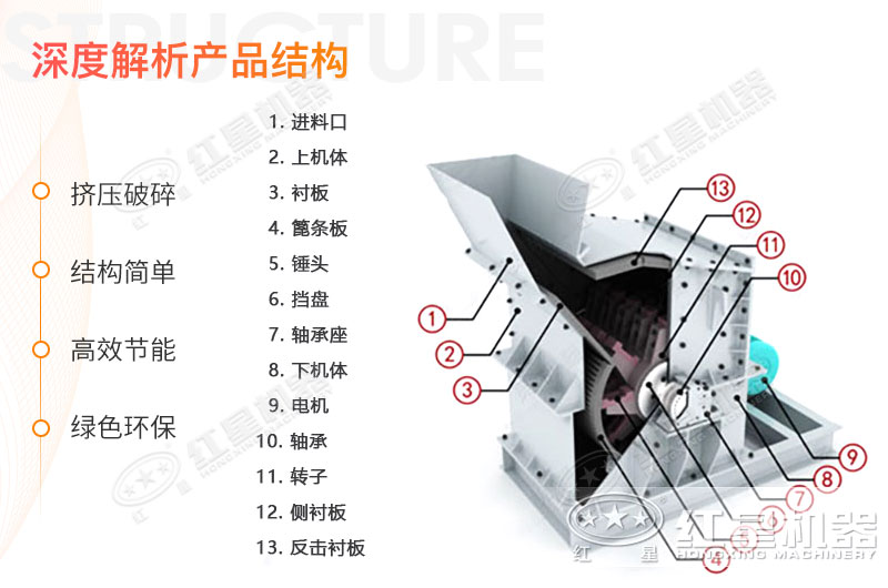 紅星細(xì)碎機(jī)是連續(xù)作業(yè)式設(shè)備,運(yùn)行性能穩(wěn)定可靠,工藝簡(jiǎn)化,結(jié)構(gòu)簡(jiǎn)單,維修方便,生產(chǎn)能力大,錘頭使用壽命長(zhǎng),廣泛適用于花崗巖,玄武巖,石灰?guī)r,河卵石,水泥熟料,石英石,鐵礦石,鋁礬土等多種礦物的細(xì)式破碎。