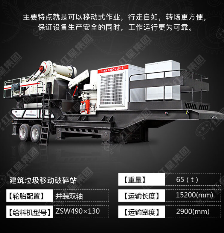 我們可以為您量身配置各種型號的移動式破碎生產線。一般,時產200方的規格比較常見,用戶使用效果較好的是HX1149F1315移動破碎站,HX938HD86 輪胎鄂破移動破碎站 ,HX1149F1315輪胎反擊破移動破碎站,HXHP300履帶式圓錐破碎移動站 ,除此以外還有更多型號可供選擇。